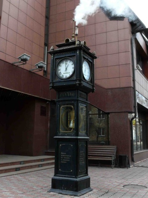 Песочно-паровые часы – одно из украшений города Красноярска, которое находится на территории площади Влюбленных, рядом со зданием корпорации под названием «Империалъ». Часы такого типа можно еще увидеть и на территории Канады, в городе Ванкувер.